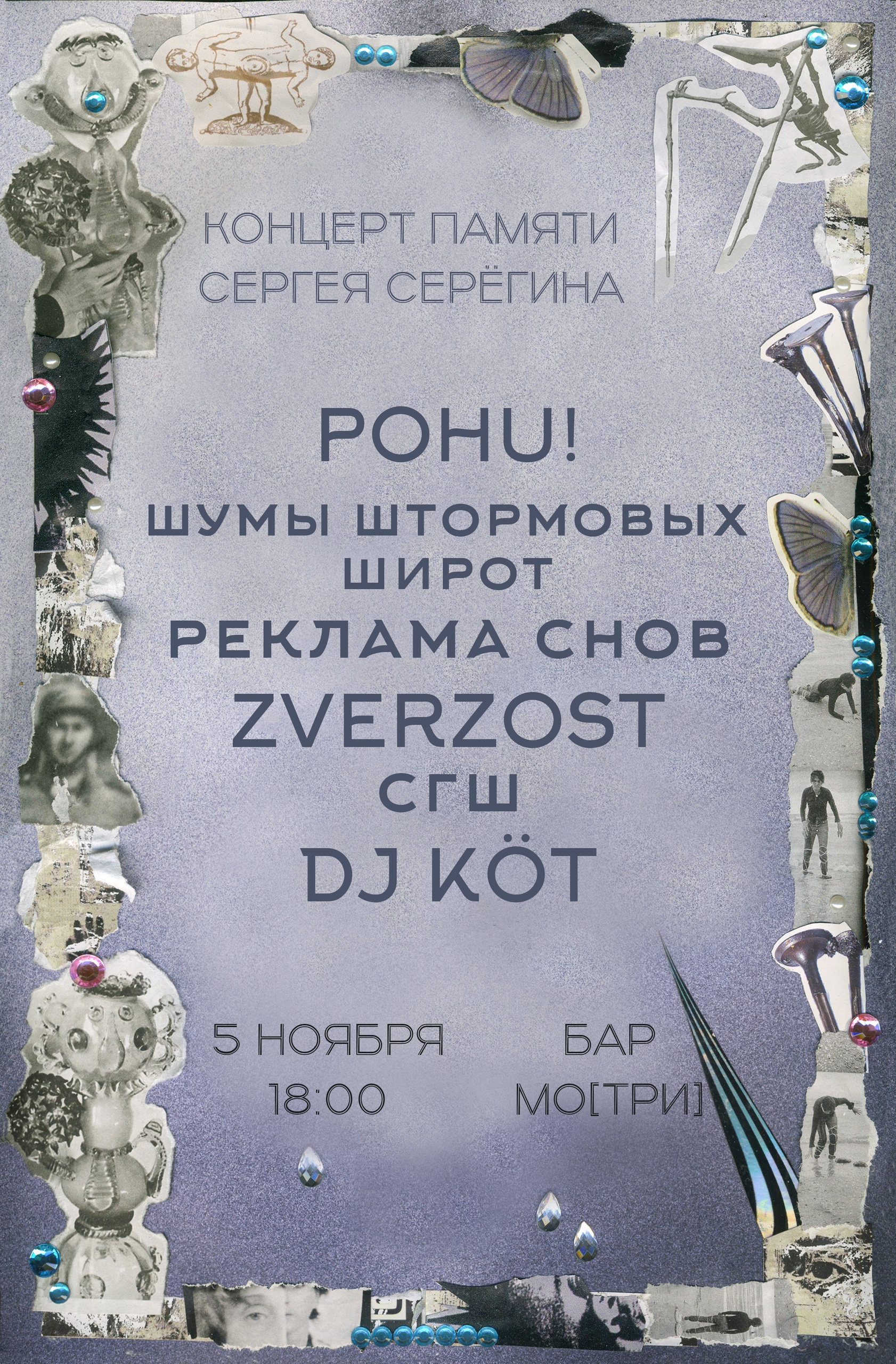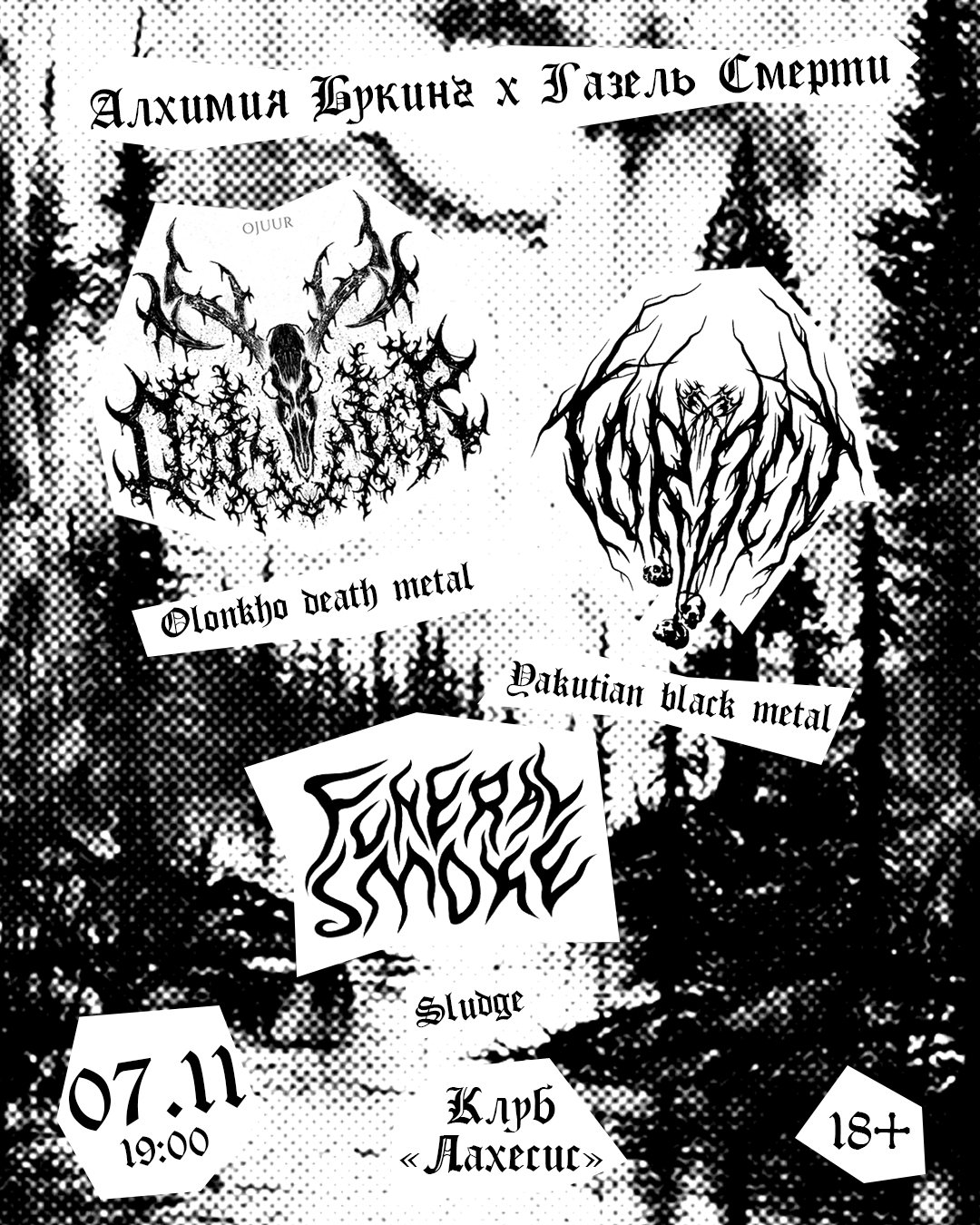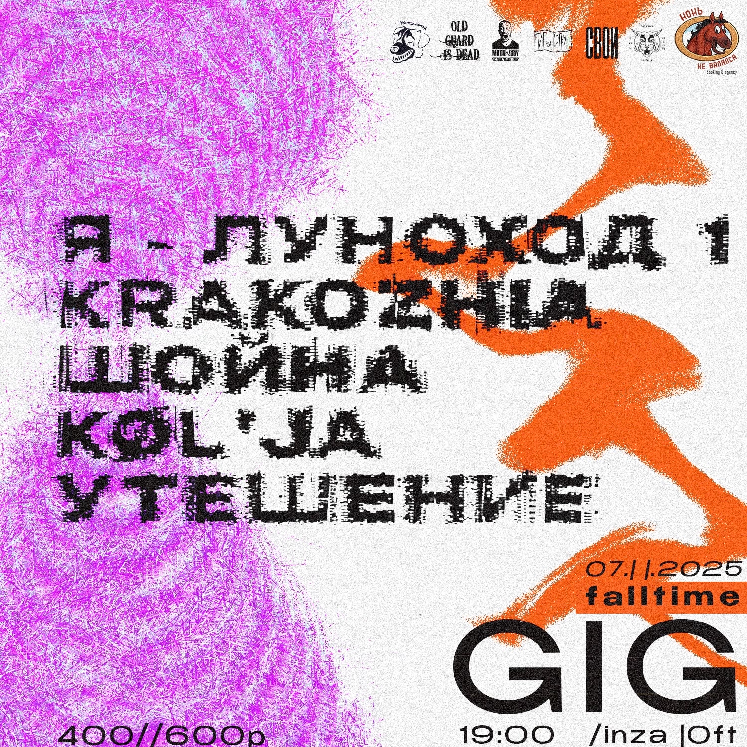 Важное событие – концерт памяти Сергея Серёгина из «Алхимии». В целом, неделя очень разнообразная на интересные события: от электрического рока и спокенворда до постблэк-хардкора и грайндкора. Панк и скакор, конечно, уже по умолчанию. Всех обнимаем, стараемся не слишком грустить и не слишком мерзнуть. ![]() Автор: Иль Янин Концерт памяти Сергея Серегина в «Мо[три]», Москва![]() Андерграунд многое потерял в лице Сергея Серегина, но дело его живет, и есть немало рук, готовых поднять знамя и нести огонь движухи в будущее. На концерте памяти выступят разные группы разных жанров, от панка до постблэка. В лайнапе Pohu!, «Шумы штормовых широт», Zverzpst и другие. Все собранные с концерта средства будут направлены в поддержку семьи Сережи. 5 ноября / Мо[три] / 18:00 / донат от 200 р. Falltime Gig в Linza Loft, Петербург![]() Стопроцентное попадание в настроение этой осени – вроде и грустно, но с надеждой. Выступают шугейзеры «Утешение», постпанковые альтернативщики Krakozhia, арт-рокеры «Шойна». И немного внезапное в этом контексте скримо Køl’ja. Кроме того, объявлено неожиданное и единоразовое возвращение небезызвестных постхардкорщиков «Я-Луноход 1». 7 ноября / Linza Loft / 19:00 / от 400 р. Черная Газель/Хара Туртас в «Лахесисе» и Fish Fabrique, Москва и ПетербургИз тумана северных земель мчится туром по стране Torden, убийственно холодный черный метал, выкованный в Якутии. В Москве земляков поддержит суровейший якутский дэт-метал-коллектив Ojuur и столичные дум-сладжеры Funeral Smoke. В Петербурге же поддержка ожидается от блэк-хардкорщиков Sepharose и «Ампутация» и, опять же, дум-сладжеров (куда же без этого!) «Савынкан». 7 ноября / «Лахесис» / 19:00 / от 500 р. 9 ноября / Fish Fabrique Nouvelle / 19:00 / от 600 р. CSBR Fest 2025 в Punk Fiction, Москва![]() Ежегодный клешнёвый фестиваль жирной, психоделичной и не только музыки. Но в основном жирной и психоделичной. Выступают стоунер-рокеры и металеры Conifer Beard, Solar Hammer и вернувшиеся после анабиоза CSBR Experienсe, сладжеры Wildweed, злющие сладжкорщики Sektat (нашу рецензию на их дебютный релиз читайте здесь), а также думовые «Варвар», «Пневмоторакс» и рокеры The Chorts. Отдельно отметим очень душевный арт по теме гига – идеально отражает дух музыки, которая потрясет стены панк фикшн. 8 ноября / Punk Fiction / 19:00 / от 800 р. Pathological Obsession в Fish Fabrique, Петербург![]() Грайндкор гигос, чтобы как следует угареть со своими отбитыми корешами под убойные бластбиты и все в таком духе. Группы уже одними своими названиями описывают по частям полное разложение человеческого тела и даже души: Blast Casualties, Urinary Tract Collapse, Degraded Stoma, Pancreatic Necrosis и Disfigured Human Essence. Гармония дисгармонии как она есть! 8 ноября / Fish Fabrique Nouvelle / 19:00 / от 700 р. The Dead President и Diagens в «Джао Да», Москва![]() Скакорщики The Dead President как следует в этом году дали огня на нашем Minimup Pop фесте, а теперь празднуют свой 16-й день рождения. Совсем взрослые стали! По этому поводу вместе с ними на одной сцене выступят можно сказать легендарные панки старой школы Diagens. 8 ноября / «Китайский летчик Джао Да» / 19:00 / от 1500 р. Человек Знака в «Джао Да», Москва![]() Посмодернистский спокенворд-рэп-концерт для вдумичвого осеннего времяпрепровождения. Ожидается торжественная презентация альбома Алека Петука «Человек знака», а также выступления артистов (далее по списку): Алексей Спиричев, Povalishin Division, Zerno и Иван Щеглов, Алёна Кривилла, Саша Брагин, Антон Котенев. 8 ноября / «Китайский летчик Джао Да» / 18:00 / от 500 р. N.Tesla, Mirny, Ochag, «Проект 