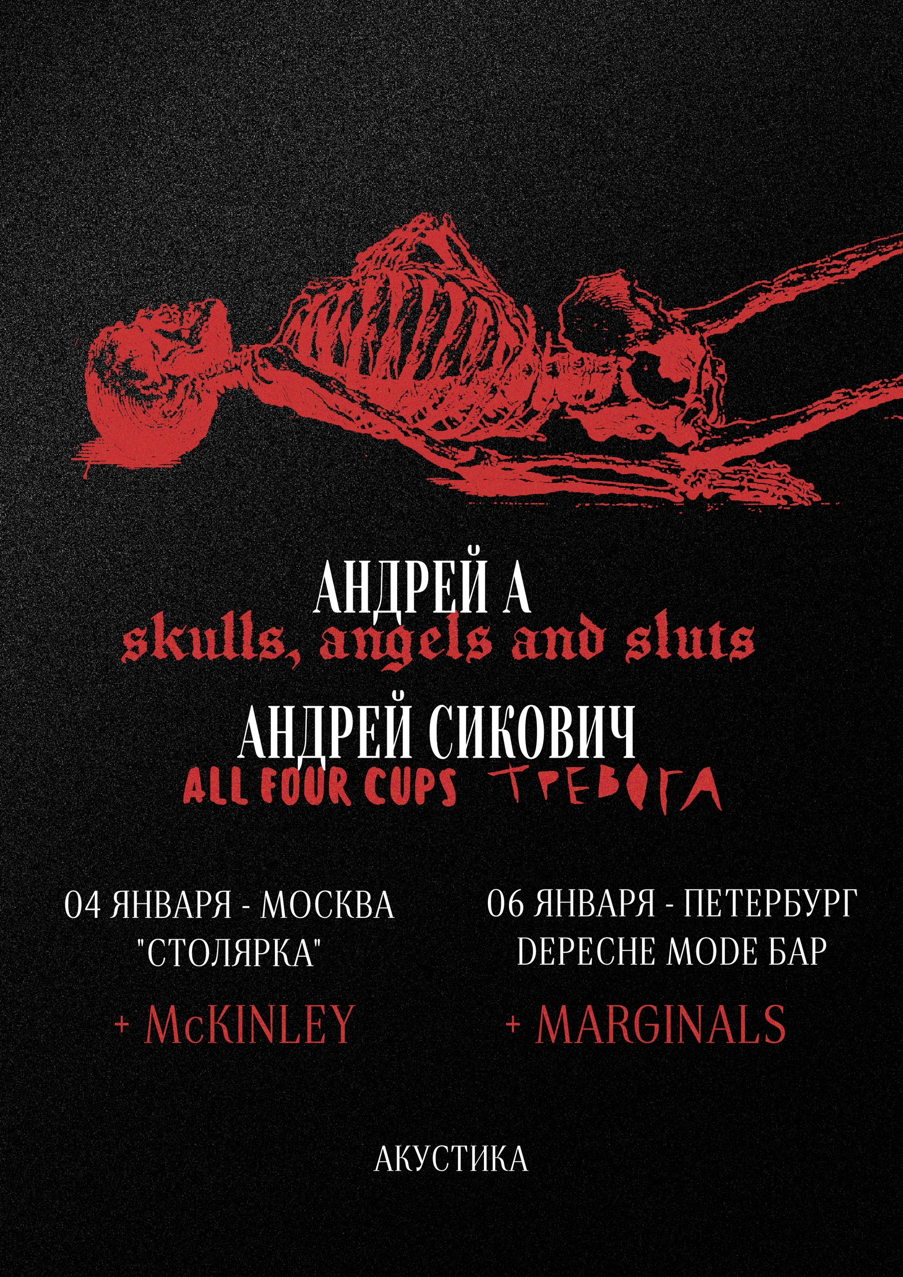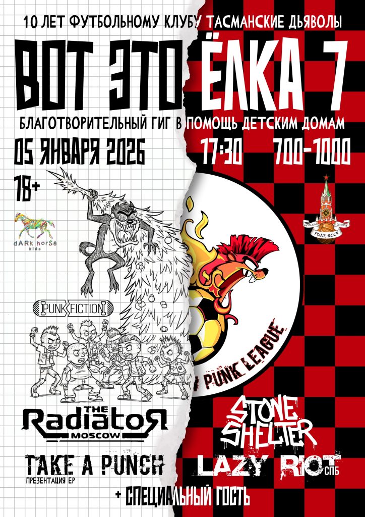 Последняя подборка анонсов в 2025 году. Заодно самая короткая в истории наших анонсов и с очень праздничной иллюстрацией. Насколько она соответствует новогоднему настроению – решайте сами. В любом случае, редакция Sadwave поздравляет вас с Новым годом, желает больше кайфа и угара и чтобы 2026 получился лучше 2025. ![]() Автор: Иль Янин Eternal Winter в Tago Mago, Нижний Новгород![]() Нижний Новгород не так уж далеко, плюс каникулы, плюс появился еще один повод туда сгонять (кроме замечательных исторических видов города конечно). Двухдневный фест намечается как из зимней сказки, соберутся все сливки инди, шугейз и психоделично-экспериментального сообщества. «Магнитола», Orwell’s Magazine, Black Hole Serfers и многие другие громкие имена. Группы, которые стоит послушать и в записи, и вживую. 3-4 января / Tago Mago / 19:00 / от 800 р. Акустика на каникулах в «Столярке» и Depeche Mode Bar, Москва и Петербург![]() Два Андрея выступают в двух барах двух столиц. Это Андрей А из небезызвестных Skulls, Angels and Sluts (или просто ЧАШ) и Андрей Сикович из All Four Cups и группы «Тревога». Душевный акустический панк, чтобы начать год с мечтательным настроением. В Москве Андреев поддержат McKinley, в Петербурге – Marginals. Подходящий саундтрек в ожидании новой весны. 4 января / «Столярка» / 20:00 / 600 р 6 января / Depeche Mode Bar / 20:00 / 500 р Вот это ёлка в Punk Fiction, Москва![]() Сразу очень много событий для одного гига. Судите сами: десять (!) лет футбольному клубу «Тасманские дьяволы», новогодние каникулы (ну типа), группа Take A Punch представляет свой мини-альбом. К тому же, концерт – благотворительный! Для сбора средств в помощь детским домам. Благую цель также поддержат скины и панки The Radiator, Stone Shelter и Lazy Riot. 5 января / Punk Fiction / 17:30 / от 700 р. «Масть», Sektat, Unisex и ERNA в Zoccolo, Петербург![]() Мощный заряд ярости под занавес каникул. Sektat заряжают вас сладжкором (наша рецензия на их недавний релиз – здесь), «Масть» заряжают агрессивным арт-хардкором, а поддерживают их в этом, безусловно, прекрасном начинании постэмометал-группа Erna и нойз-рок коллектив Unisex. 6 января / Zoccolo / 19:00 / от 666 р. The Пауки, Clotty и Front78 в Zoccolo, Петербург![]() Веселый панк-рок угар с отличным составом для тусовки. Судите сами: старошкольные The Пауки, панки-рокенролльщики Clotty и поп-панки Front78. Танцы, пенные напитки и сердце – пламенный мотор. 7 января / Zoccolo / 19:00 / донат Подписывайтесь на Sadwave в социальных сетях: 👉Поддержать Sadwave донатом Больше концертов в паблике наших друзей Into The Void ![]() |