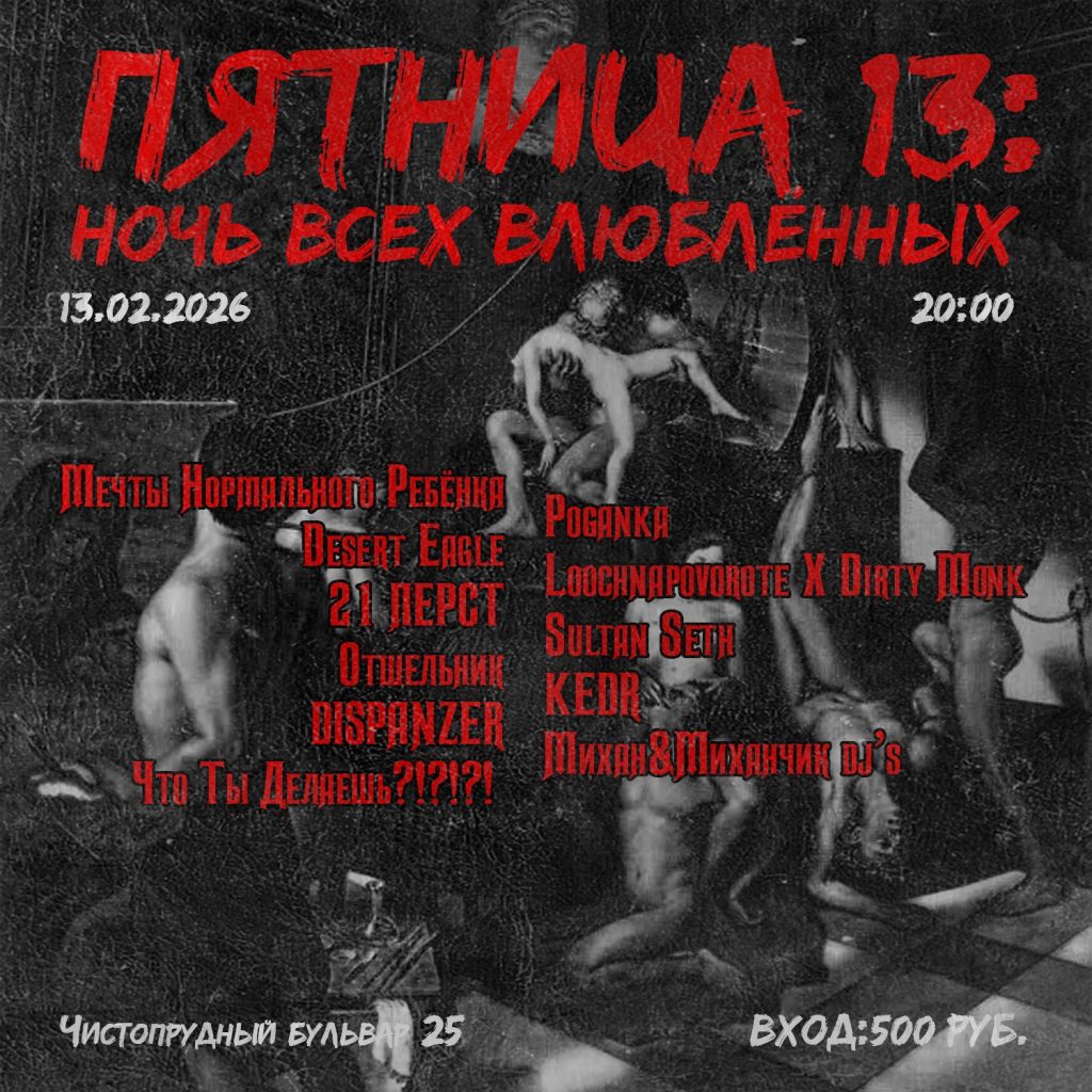 Ожидаем важное событие – первая в этом году пятница, 13-е! По такому поводу много концертов мрачных, но исключительно в хорошем и парадоксально веселом смысле: дарк-панк, постпанк, постметал, грайндкор. Темная романтика тоже запланирована, так что есть куда сходить и на свидание. ![]() Автор: Иль Янин Пятница, 13: Ночь всех влюбленных в «Ла́хесисе», Москва![]() Романтическое настроение в пространстве «Ла́хесис» (в преддверии изобретенного коммерсантами праздника) создадут самые эмоциональные коллективы Москвы. Черный рок Dispanzer, прекрасно душераздирающее и шумное эмо «Мечты Нормального Ребенка», поэтичные панк-футуристы и футуристки «Что Ты Делаешь ?!?!?!», блэк’н’ролльщики «Отшельник» и другие коллективы. Для афтерпати запланированы диджейские сеты с техно, классическим и не только хип-хопом и другими сюрпризами. В лайнапе диджеев заявлен и Dirty Monk. 13 февраля / «Ла́хесис» / 19:00 / от 500 р. Tanator в «Мо[три]», Москва![]() Приблэкованный дэт и убойный треш в одном флаконе для полного разгрома. Сольный концерт Tanator и тотальная аннигиляциия для всех любителей мощного, быстрого и агрессивного метала. Короче, готовьте шевелюру, боевые джинсовки, точите шипы для слема и укрепляйте дыхалку для серкл-питов. 13 февраля / «Мо[три]» / 18:00 / от 800 р. Punk Rock Go-Go в баре Mission, Москва![]() Виниловая вечеринка в уютном баре Mission со свободным входом для всех ценителей теплого звука. За пультом пивовар Sabotage Иван Hellbrewer, только вернувшийся с японских гастролей Илья Кöт и пермский диджей DarkDuck. Рабочая формула: пенные напитки + вкусная еда + хорошая музыка = душевный вечер пятницы. 13 февраля / бар Mission / 20:00 / free «Позоры», Bernatas и «Пыль» в «Ласточке», Петербург![]() Что поможет скрасить пятницу? Бунтарский дух и творческое безумие, конечно же. Нойз-арт-панки «Позоры» выступают вместе с экспериментально-абстрактным проектом Bernatas и экзистенциал-рок-группой «Пыль». Настоящий артхаос, как это действо называют сами организаторы мероприятия. 13 февраля / «Ласточка» / 19:00 / от 800 р. Friday The 13th Vol. VII в «Смене», Москва![]() Сдувайте пыль с мачете и хоккейных масок, готовьтесь к 13 февраля / «Смена» / 19:00 / от 500 р. Гиг На Коленке 3 в «Смене», Москва![]() Буквально в соседнем зале «Смены» немного иной панк-антураж – там вместо танцев разнос, но разнос по кайфу. Оголтелый панк, стрит-панк и панк-хардкор от The Slurm, Self Destructs, Dissect и Re Hab. Хорроры вымышленные и ужасы реального общества, воплощенные в музыке, обычная пятница в «Смене». Кстати, «Гиг на коленке» получится еще и деньрожденческий – и организует его как раз именинница. 13 февраля / «Смена» / 18:00 / от 700 р. Truckdrivers в Glastonberry и «Цоколе», Москва и ПетербургУральский рэгги-панк в лице Truckdrivers снова возвращается в Москву и Петербург с большими концертами, танцами и угарчиками (кстати, кто повлиял на их звучание – читайте у нас). Поддержат веселье в столице The Squidbillys – сайкобилли-панки, завсегдатаи нашего Minimum Pop феста и просто замечательные музыканты. В северной столице в поддержке рокеры из Ярославля Daladna. 13 февраля / Glastonberry / 19:00 / от 1300 р. 14 февраля / «Цоколь» / 19:00 / от 1300 р. «Шумы Штормовых Широт» и другие в «Мо[три]», Москва![]() Под занавес колючих зимних морозов о ледяном ветре напомнят очерненные постметалисты «Шумы Штормовых Широт». Их поддержат металлизированные панк-чернокорщики «Бесконечная Зима» и сладжкорщики Sektat (нашу рецензию на их дебютный релиз читайте здесь, а на самый све