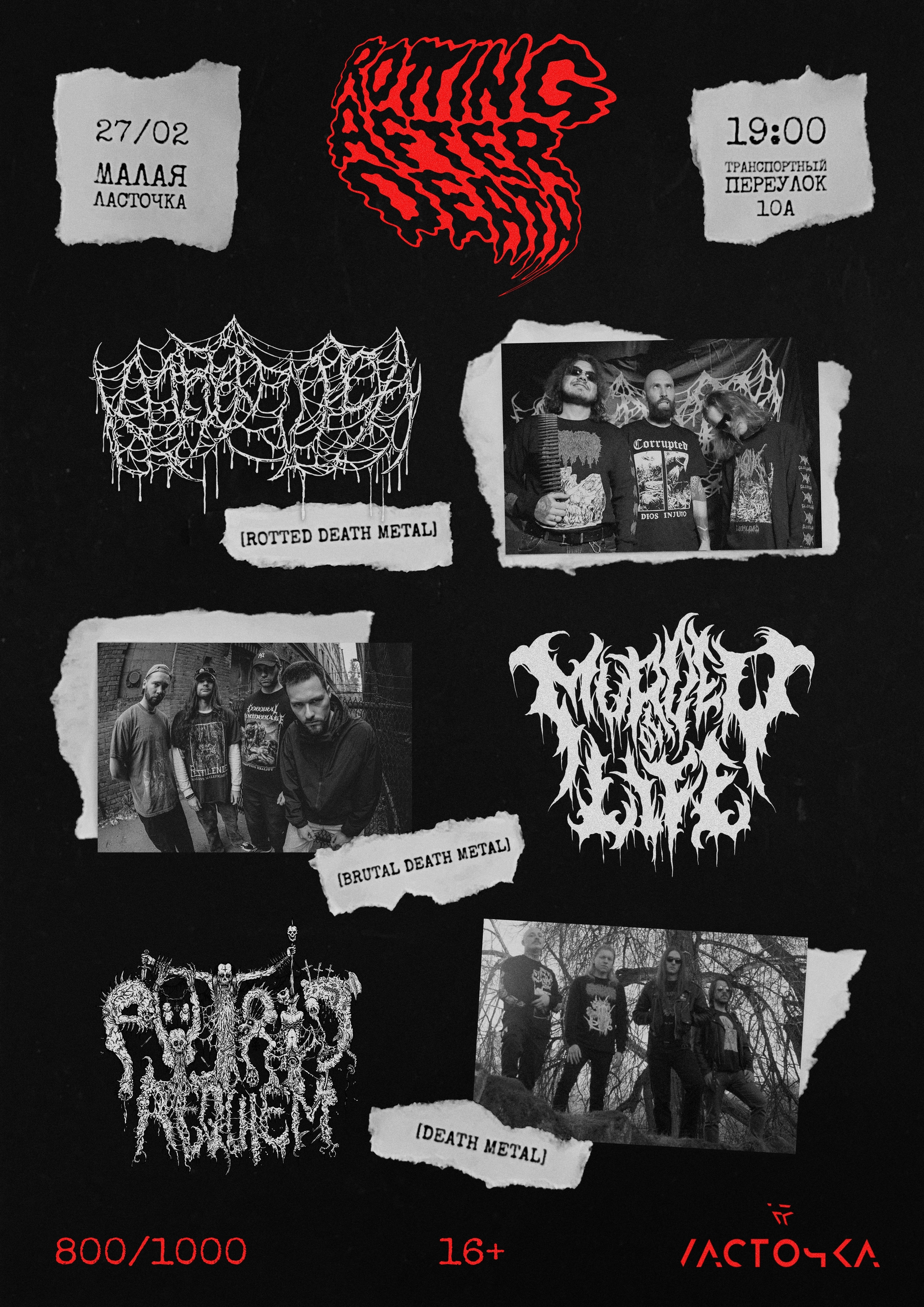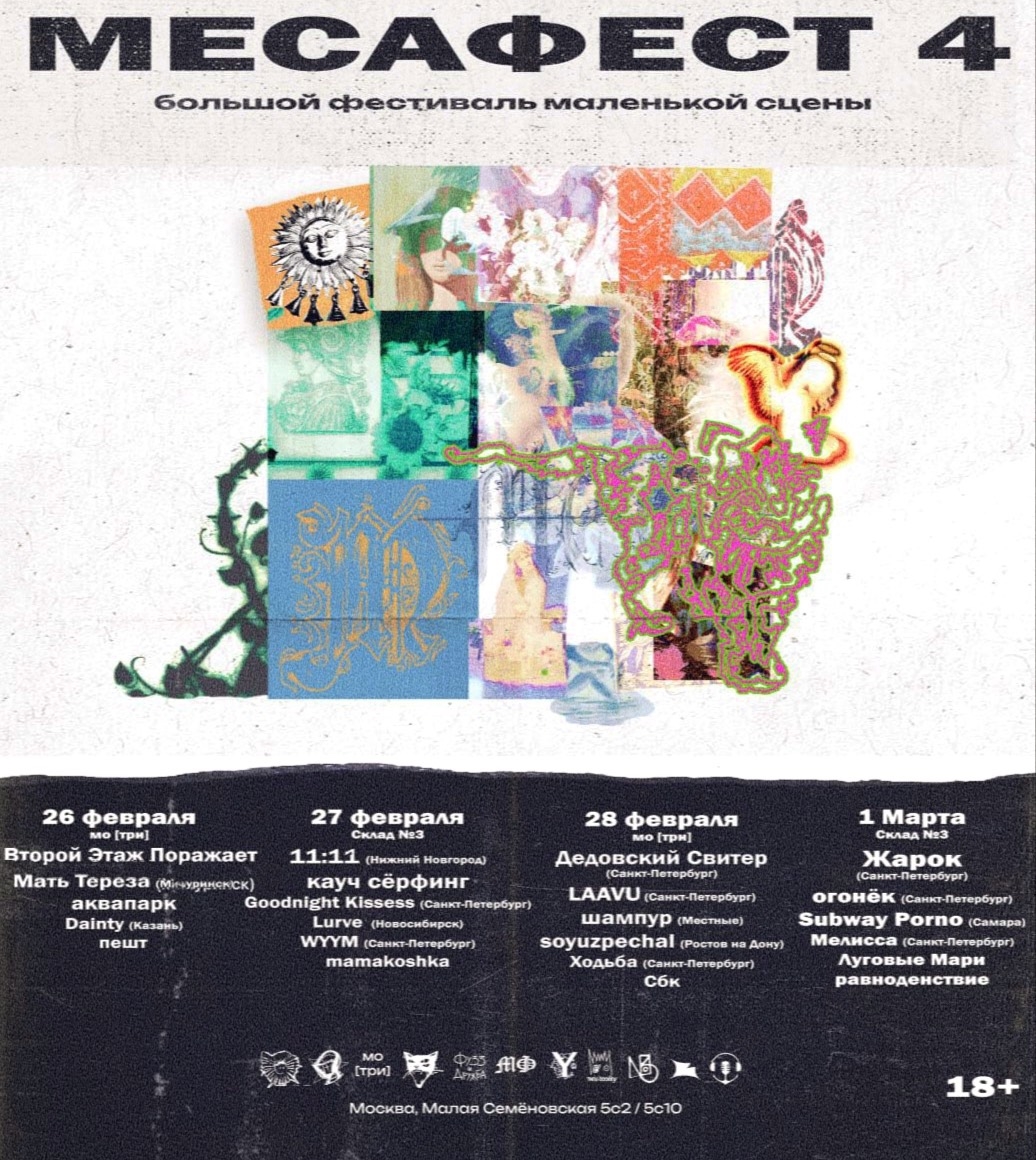 Последняя неделя зимы. Много панк-хардкора, всякого разного метала (дэт, треш, блэк), много инди и шугейза, а еще психоделика и стоунер. Выбор есть, и это очень хорошо. ![]() Автор: Иль Янин МесаФест в «Складе №3» и «Мо[три]», Москва![]() Четыре дня качественной инди-музыки широкого спектра жанров – достойные проводы утомительной зимы. Лайнап сильный, названия выступающих коллективов на слуху всех, кто хоть немного знаком с отечественным андерграундом. А если не на слуху, МесаФест окажется отличных поводом это исправить. Шугейз, психоделик-рок, постпанк, немного эмо и построка… Уже сразу в списке нас поджидает «Мать Тереза», почтенная группа с почти сорокалетней историей, «Второй Этаж Поражает», «Дедовский Свитер» и многие другие (редакция особо хочет отметить группу «Луговые Мари»). Как и положено приличному многодневному фестивалю, заявлен и весьма любопытный маркет! Похоже, весна, наконец, приходит в столичные клубы. 26 февраля – 1 марта / «Склад №3» и «Мо[три]» / 18:00 / от 2500 р. Стонеръ движъ в «Клешне», Москва![]() Стоунер-путешествие продолжается. Из далекого Магадана в «Клешню» приедет психоделик-стоунер-коллектив «Стон морей», причем вместе с ним выступят московские музыканты: варганист Николай Савин и вокалистка с невероятным диапазоном Рита Февралева. Также в лайнапе столичный рок от Hexenblatt и психоделик-дум-стоунер от Aether. 27 февраля / Claw Bar / 19:00 / от 500 р. Rotting After Death в «Ласточке», Петербург![]() Дэт-метал-гигос для отчаянных патлачей и других любителей музыки пожестче. Гроулы и хрипы, бластбиты и злые риффы – подходящий саундтрек нашествия тяжеловооруженной нежити. Поднимают, вооружают и воонеодушевляют нежить Khrip Otsa , Putrid Requiem и Murder of Life. 27 февраля / малый зал «Ласточки» / 19:00 / от 800 р. Inquisition Fest в «Смене», Москва![]() Москва без металрубки не останется. Треш-метал-угар приходит в «Смену», так что готовьте ноги и жопы для серкл-питов и все остальное для тотального угара. Будни будут разорваны в клочья, обывалы – закошмарены, спасибо Chemical Warfare, Termination, The Wolves и другим не менее достойным коллективам. 27 февраля / «Смена» / 17:00 / 500 р. первая десятка, потом от 700 р. Punk’Oi’Mania VI в клубе Eclipse, Москва![]() Шумная вечеринка от ветеранов сцены в последний день зимы. Восставшие из пепла панк-хардкорщики Antreib, вечно молодые (уже не первое десятилетие) стрит-панки Diagens, ска-панк-хардкор для веселых и агрессивных танцев Dead President и вологодские панк-рокеры «Личные Убеждения». Громко, быстро и угарно, самое то, чтобы выпустить пар или, наоборот, зарядиться как следует для отмены будней и мещанства. 28 февраля / Eclipse / 18:00 / от 1100 р. Majestat, «Плаха» и Doden Grotte в «Цоколе», Петербург![]() Majestat своим новым альбомом уже заморозили Москву и теперь везут черный лед и холод блэк-метала в Петербург. Финальный разгром намеков на приближение тепла поддержат подкрепления в лице мелодичной депрессив-постблэк-команды «Плаха» и коллектива Doden Grotte. 28 февраля / «Цоколь» / 19:00 / от 1200 р. Wommer, «Карга», «Брахмаширас», Kreuzung в ДК «Приход», Владимир![]() Жиро-думовой тур продолжается: темные дум-стонер-команды Wommer и «Карга» уже оставили за собой дымящиеся сладж-руины в крупных городах, пришло время городов уютных, вроде Владимира неподалеку от Москвы. Здесь к ним присоединятся именитые блэк-воины «Брахмаширас» и черные крастеры Kreuzung. 28 февраля / ДК «Приход» / 19:00 / от 500 р. Nagasaki и другие в Tago Mago, Нижний Новгород![]() В нескольки