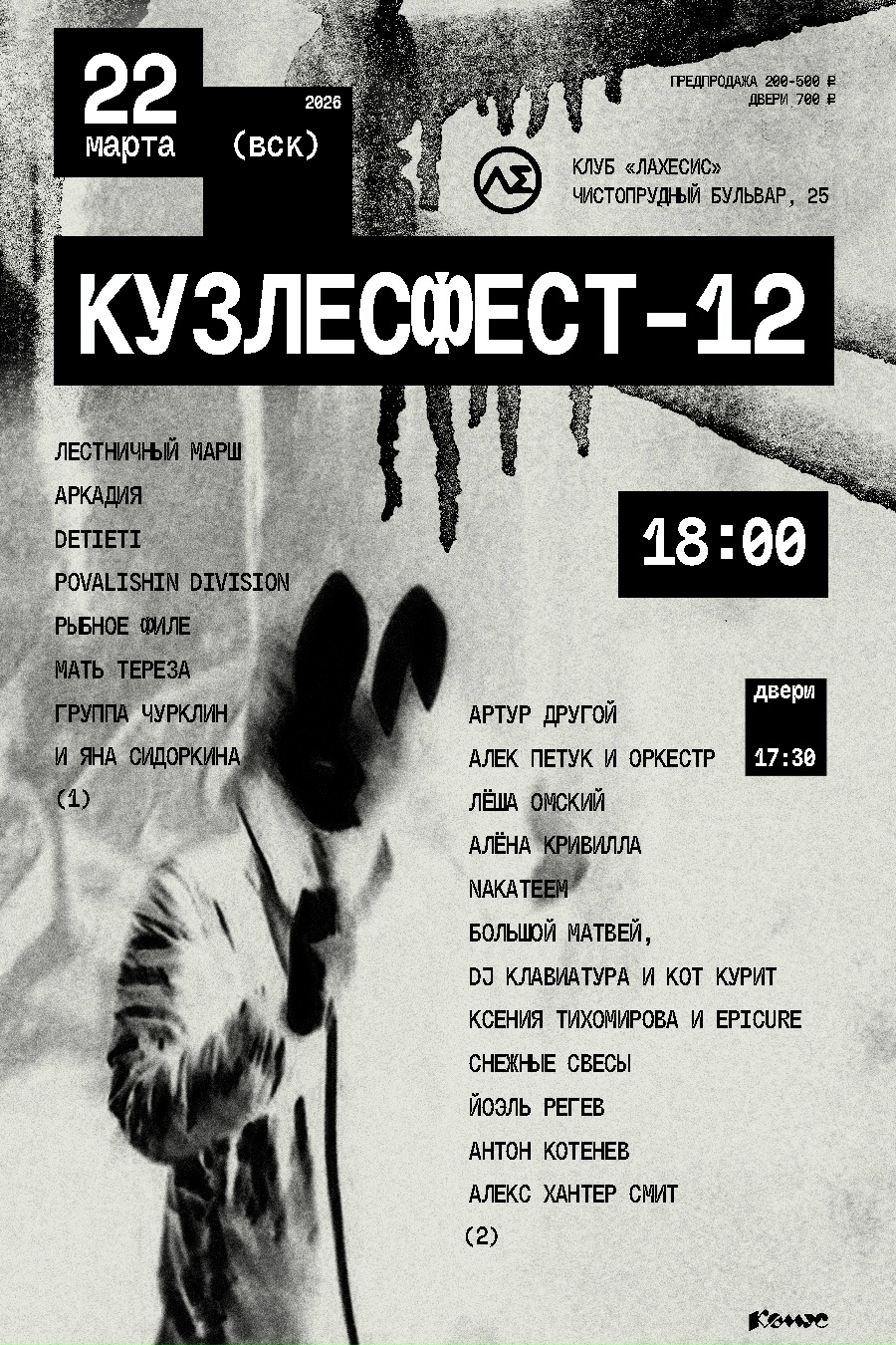 Эта неделя очень экспериментальная и концептуальная. Авангард разбавлен сладж-дум-стоунером и психоделикой и немного – эмо и поп-панком. Врываемся в весну с двух ног и стреляем по будням на поражение. ![]() Автор: Иль Янин Концерт памяти Сергея Серёгина в «Смене», Москва![]() Дело Сергея Серёгина живет! Когда-то он составил «лайнап мечты» из светил отечественного андерграунда, а теперь его мечта сбылась, конечно, жаль, что при таких обстоятельствах. И дело причастных к андерграунду и сцене – как следует покутить на концерте и показать, что Серёгин не зря отдавал всего себя движухе. Тем более лайнап более чем солидный: мастодонты краста Distress, неокрастеры Convince, дэт-метал-бэнд Tanator, чернорокеры Dispanzer и другие апологеты разгрома и кутежа. Все вырученные средства – семье Сергея Серёгина. 21 марта / «Смена» / 18:00 / от 1500 р. Bird Bone и НДвТБ в клубе Pravda, Москва![]() Неделю назад эмо-панки 20 марта / клуб Pravda / 19:00 / от 1500 р. Thy Grave, «Вена», «Карга» и Gass в «Ласточке», Петербург![]() Жирное возвращение сладж-метала Thy Grave в обновленном составе. Поддержат их еще одни оголтелые сладжеры «Вена», стоунер-сладж-бэнд «Карга» и дроун с нойзом Gass. Колонки плещут подвальной слизью, уши трещат от перегруженных риффов, сердце замирает от тягучих темпов, жиром наполняются души. Все как положено. 20 марта / «Ласточка» / 19:00 / от 700 р. The Chorts, Solar Hammer и Hypnozys в «Клешне», Москва![]() В «Клешне» – дум, стонер и рок, чем никого не удивить. Погрузиться в пространство риффов получится под ведьмински-психоделический дум-стоунер от Hypnozys, стоунер-рок и даже метал от Solar Hammer и рок от The Chorts. Танцы, пенное, весна и музыка то для размышлений, то для активных потрясений патлатой головой. 20 марта / Claw Bar / 19:00 / от 400 р. Фестиваль тройного дня в «Мо[три]», Москва![]() Большой концерт концептуальной музыки в честь дня рождения творческого проекта ЛКИП. Групп много, жанров много, котик один (на афише) и тот сгенерированный. Выступают душевные группы и исполнители: Юра Аристов, «Исток» из Владимира, «Фрезер Ц», Calanque, «Керамик», «Вставка» и кто только не. Гаражный рок, постгранж, эмо, постпанк, немного панк и многое другое – ждут вас! 20 марта / «Мо[три]» / 17:30 / от 600 р. «Теневая Культура» и «Резина» в «Складе №3», Москва![]() Психоделическая электроника, можно даже сказать, психотроника от «Теневой Культуры» вновь покоряет Москву. В поддержке гаражные психоделические рокеры «Резина». Оба коллектива не чураются экспериментов с жанрами и звуком: первая с электроникой, вторая с гитарной музыкой. Кажется, нас ожидают шумовые сюрпризы на любой вкус. 20 марта / «Склад №3» / 19:00 / от 900 р. Grave Disgrace и Iron Sect в «Ласточке», Петербург![]() «Ласточку» в эти выходные решили не щадить – сразу после сладж и стоунер-сладж концерта ее ожидает… Стоунер-сладж и дум-стоунер концерт! Дум впридачу, можно сказать. Старички отечественной сцены Grave Disgrace представляют новый альбом, «Helldiver», а сцену с ними разделят риффоплеты Iron Sect. Медленно, тяжело и жирно, буквально погружение в болотную негу. 21 марта / «Ласточка» / 19:00 / от 2000 р. Xoloda, Nocker и «Тишь» в пиццерии Stay Gold, Петербург![]() В знакомой многим петербургской пиццерии Stay Gold тоже не без экспериментального. Выступает гитаротяжелая-электронная команда Xoloda, играет дэнсотроника от коллектива «Тишь» и альтернативят металом Nocker. И под каждую группу можно подобрать идеальный топпинг к пицце! 21 марта / Stay Gold / 19:00 / от 500 р. Весна в С