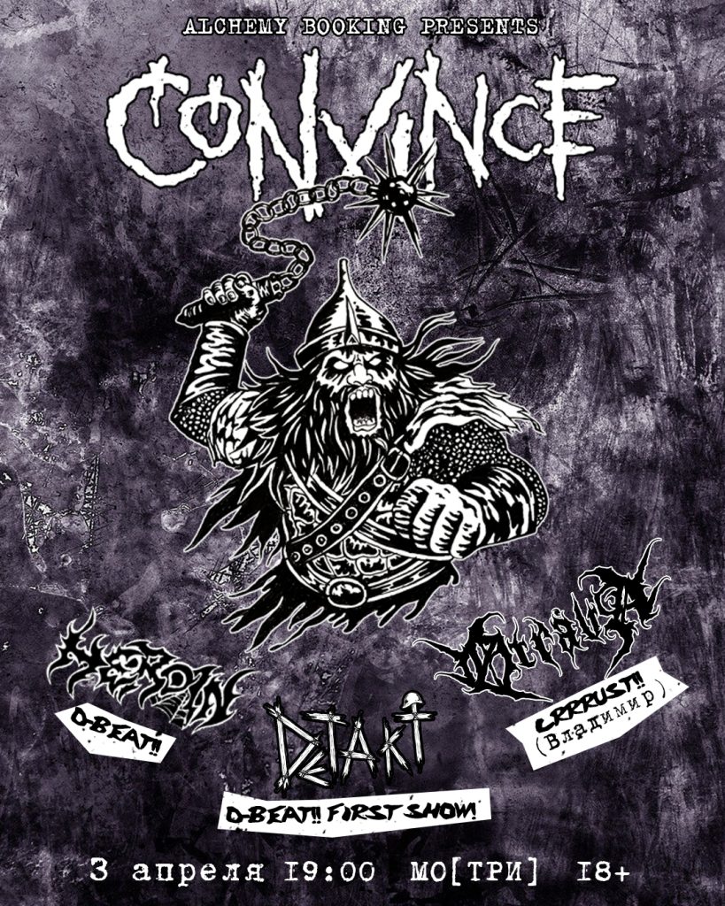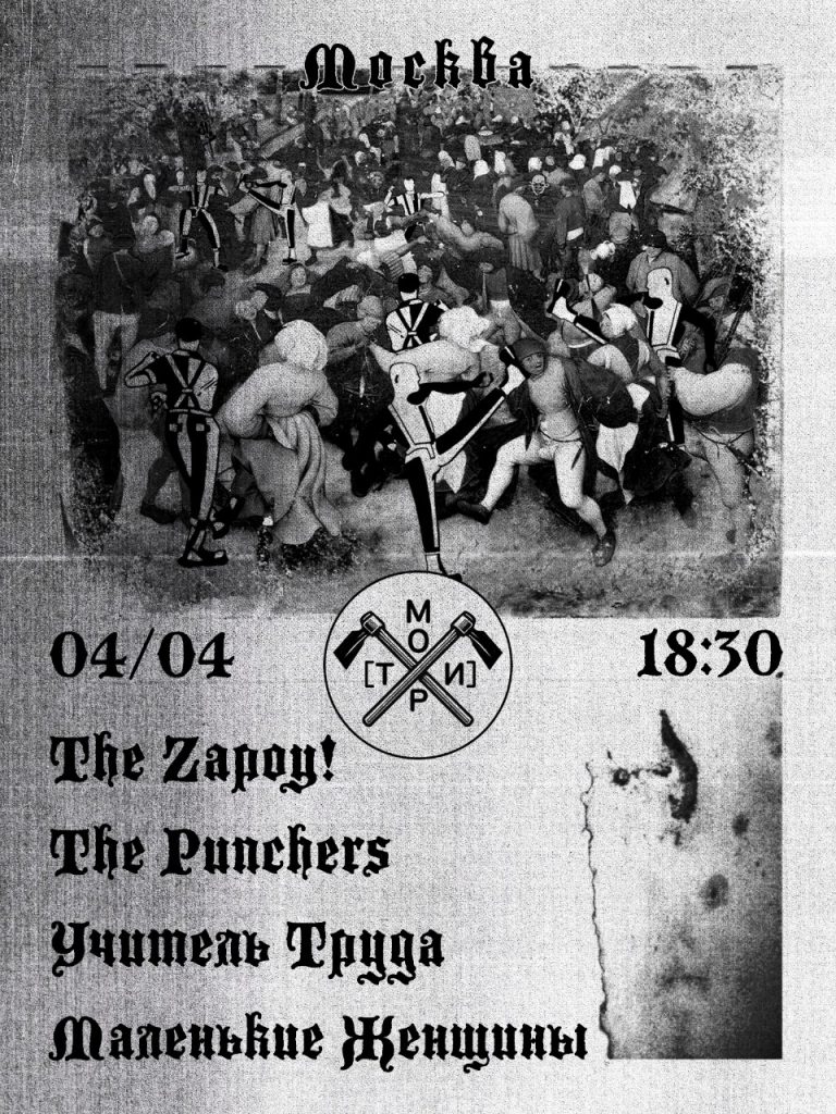 Кутеж-град – Москва или Петербург? Решайте сами. Концертов снова очень много, по весне сцена оживает, и это прекрасно. Вместо почек вновь распустился шугейз, но так и остался в меньшинстве. В основном все-таки метал, много тяжелого метала. Oi, панк’77, краст, эмо и сайкобилли тоже в программе, поэтому веселиться можно так, словно будущего и нет. Громкая музыка под пение птиц – ну красота же. ![]() Автор: Иль Янин Convince, Øtråva, Heroin и Detakt в «Мо[три]», Москва![]() Оголтелый краст-гиг для буйного подытоживания недели и открытия отходных. Краст и дибит, ярость и кутеж, (черный) цвет андерграунда. Convince уходят в тур по стране и открывают его здесь и сейчас, в столице порока Москве, поддержат их выходцы из темных владимирских лесов Øtråva (нашу рецензию на их релиз читайте здесь), жуткие Heroin и стремительные Detakt. Впрочем, все команды жуткие, страшные, стремительные и оголтелые, так что будет круто. 3 апреля / «Мо[три]» / 19:00 / от 700 р. Pyre, Disillumination и Absorption в клубе IZI, Москва![]() В клубе IZI сбор любителей тайных знаний и всяких разных наук. Тайными знаниями делятся ветераны дэт-метала Pyre, не так давно вернувшиеся к активной (и весьма активной) музыкальной деятельности. Компанию им составят еще два вестника дэт-металопокалипсиса Disillumination и Absorption. 3 апреля / IZI Moscow / 18:30 / от 1800 р. goodnight kisses и «Кломипрамин» в «Складе №3» и клубе «Юнион», Москва и Петербург![]() Вернулись тепло и солнце и снег почти сошел, значит, пришло время шугейза. Концерты мечтательной и романтичной музыки, как раз по погоде, запланированы в «Складе №3» и «Юнионе»: выступают бодрые стенозвуковые гранжгейзеры goodnight kisses и дрим-поп-команда «Кломипрамин». Подходящий контекст, чтобы немного расслабиться и на время позабыть о серых буднях и прочих невзгодах. 3 апреля / «Склад №3» / 19:00 / от 900 р. 5 апреля / «Юнион» / 19:00 / от 900 р. «Учитель Труда», The Zapoy!, The Punchers и «Маленькие женщины» в «Мо[три]», Москва![]() За панк/oi! Не успеет клуб оправиться после краст-набега, как тут уже соберутся панки, скинхеды и просто подозрительные типы. Впрочем, уверены, и многие крастеры с предыдущего вечера никуда не денутся. Тусовка намечается что надо и группы как на подбор для совместного распития пенного и дружеских толканий локтями у сцены: oi от The Zapoy! и «Учителя Труда», панк’77 от The Punchers и «Маленьких женщин». Короче, полный угар! 4 апреля / «Мо[три]» / 18:30 / от 800 р. Sounds of Sakha 3 в пространстве «Ла́хесис» и пиццерии Stay Gold, Москва и ПетербургТрадиционный фестиваль якутского метала традиционно возвращается на Газели Смерти. Впервые на борту сего автомобиля – группа SYYS YS, которая валит риффы и совмещает их с традиционным горловым пением и звуками якутского варгана, хомуса. После Москвы и Петербурга они отправятся в родные края, но по дороге посетят туром немало городов, так что следите за подробностями! В Москве гостей поддержат сладж-дум-строунер-коллектив Hypnozys и стоунер-нойз-рок-команда «Варвар», в Петербурге – жирные дум-сладжеры «Савынкан» (хвалим их здесь) и хэви-блэкари Disbound. 4 апреля / «Ла́хесис» / 19:00 / от 700 р. 5 апреля / пиццерия Stay Gold / 19:00 / от 500 р. Московский Сайкобилли Фест VII в Glastonberry, Москва![]() В субботу общий сбор фанатов сайкобилли, рокабилли, панкобилли и не только! Громкая музыка, гудение контрабасов, танцы до упаду, вкусные напитки рекой, красивые и стильные люди – план простой, но эффективный. В лайнапе The Rocket Beats, Hellstompers, The Magnetix и завсегдатаи нашего Minimu