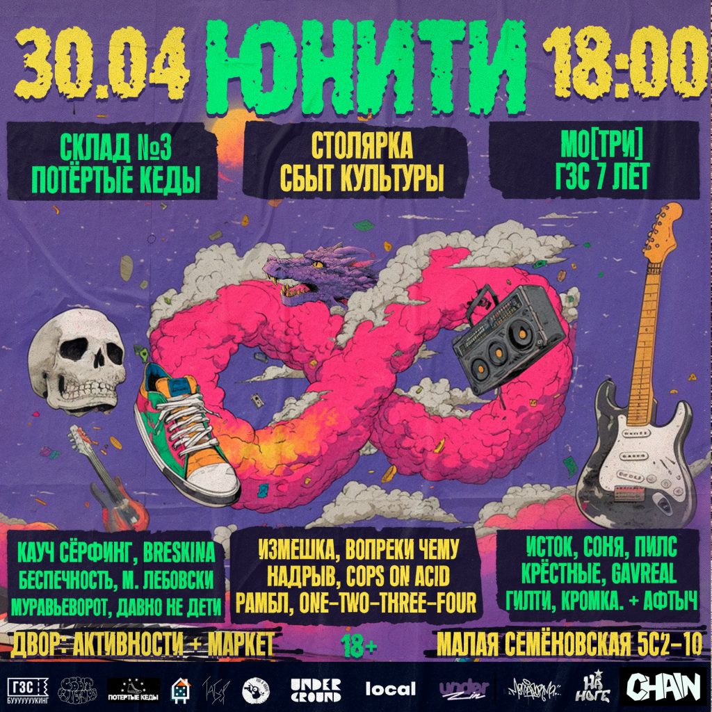 Букинги и лейблы отмечают Первое мая ударным трудом: почти все концерты на этой неделе определяются не столько группами, сколько командами и тусовками. Состав, в принципе, стабильно качественный: панк-рок, хардкор-панк, инди, метал-хардкор, стоунер, разнообразный блэк и даже немного акустики. Отдыхаем по-человечески и готовимся к рабочим подвигам. ![]() Автор: Иль Янин Юнити в «Складе №3», «Столярке» и «Мо[три]», МоскваБольшой весенний инди-рок-фестиваль в пространстве «Гамма» – надеемся, первый на очереди, а за ним уже выстроилась масса других таких же. Три площадки, три тусовки, коллективы все, в основном, молодые, но многие уже заслуженные. В «Складе №3» лайнап от команды «Потертые кеды»: шугейз, гаражный психоделический рок, немного тяжелого и поп-музыки. В баре «Столярка» собран «Сбыт Культуры»: авант-джаз, психоделический и экспериментальный рок, в общем, все довольно авангардно. В «Мо[три]» как будто более прямолинейная музыка от сообщества «Гиг за сотку»: эмо-панк, постпанк и много разного инди-рока, альтернативного и не только. Во дворе традиционно ожидается своя движуха и атмосфера, с активностями и маркетом, ну и конечно тройная афтерпати до утра. А утром на три дня угара в тур отправляется тусовочный автобус, так что спать, видимо, не придется до понедельника. 30 апреля / «Склад №3», бар «Столярка», «Мо[три]» / 18:00 / от 1650 р. Pale Hands, Potvor, Disbound и «Таймыр» в Zoccolo, Петербург![]() Насчет дня рождения, который отмечается этим концертом, ничего сказать не можем, но лайнап собирается качественный. Постблэк-группа Pale Hands представит новый сингл, черный дибит-коллектив Potvor (наша рецензия здесь) партией кларнета нарушит череду гитарных риффов, Disbound рубанут черный хэви, а «Таймыр» как следует бахнут постхардкор. 1 мая / Zoccolo / 18:00 / от 600 р. Костры x Мясафест в «Сердце» и Eclipse, Петербург и МоскваБукинги «месафест» и «безымянный культ» компактно упаковали свои коллективы в два концерта. В основе лайнапа три группы: постпанковый постблэк-коллектив «Культура Курения», блэкгейз-команда Ospa 1959 и мелодичный депрессивный блэк-метал-бэнд «Плаха». В Петербурге их поддержат эмо-метал-хардкорщики «Енисей», а в Москве – блэкгейз-скримо «Этила Эфир». Красиво, мелодично, меланхолично. 1 мая / Zoccolo / 18:00 / от 2300 р. 2 мая / Eclipse / 18:30 / от 2300 р. Фузз и Дружба в «Мо[три]», Москва![]() «Фузз и Дружба» тоже планирует такой небольшой шоукейс. В третьей итерации «Мотыги» соберутся три команды лейбла: шумный танцевальный инди-панк «сканк!», инди-поп-рок «Проспекты» и, без лишних слов, «Мич». Фузз и перегруз на первомай, в общем-то, обеспечены. 1 мая / «Мо[три]» / 19:00 / 0-500 р. Мир, Стонер, Май в «Клешне», Москва![]() В «Клешне» по случаю тепла традиционно рок и шашлыки. В лайнапе стоунер-рок-группа «Стон Морей» аж из Магадана (плюс Николай Савин и Рита Февралева), массивные и жирные стоунер-метал-коллективы Double Dragon (тольяттинские!) и Astrosail, а также рокеры The Chorts. Стоунер-пролетарии собрались со всех уголков страны чтобы отметить этот прекрасный праздник, Первое мая. Жир на сцене и жир на мангале. все как положено. 1 мая / Claw Bar / 19:00 / от 600 р. Забвение в Eclipse, Москва![]() Мир.Труд. Забвение. Метал-хардкор. Злая и тяжелая музыка откроет май в клубе Eclipse. Рубят метализированный хардкор, хардкоризированный метал и даже диджитал-хардкор 4444, «Пять Сантиметров в Секунду», dšgb, Shangri-Ła и Deep Blue. Намечается нехилая такая рубка под м
